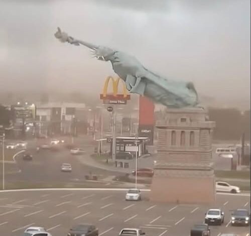 The skyline of the local community was irrevocably altered late Tuesday night as a relentless meteorological assault culminated in the dramatic destruction of a cherished landmark. A massive, 115-foot replica of the Statue of Liberty, which had served as a beacon of regional pride and a prominent roadside sentinel for years, was unable to withstand the cumulative force of a high-velocity storm system. As the clock edged toward midnight, the structure succumbed to the atmospheric pressure, toppling from its pedestal in a collapse that has left residents grappling with the sudden erasure of a familiar symbol. While the physical debris is currently being contained by emergency responders, the emotional impact on the community remains vast, marking a somber chapter in the area’s history of weathering extreme climate events.
