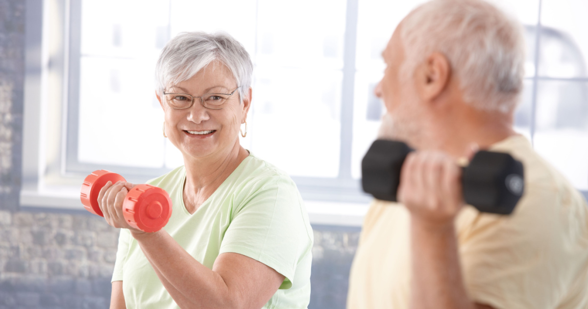 Vital senior couple exercising in the gym.